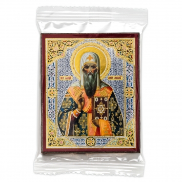 Икона на деревянном планшете 6х9 двойное тиснение, аннотация, упаковка Алексий, митрополит Московский