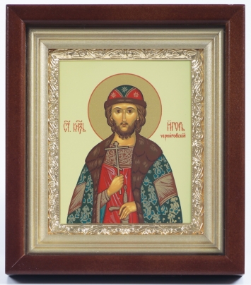 Икона в киоте 11х13 сложный, темпера, рамка золочёная Игорь князь Черниговский