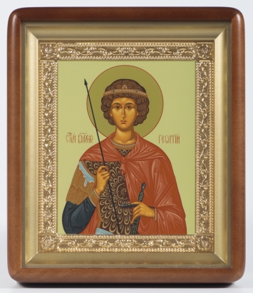 Икона в киоте 18х24 фигурный, темпера, рамка золочёная Георгий Победоносец