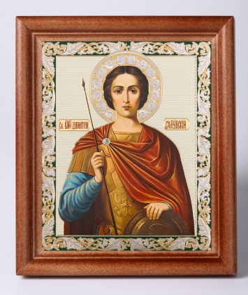 Икона в деревянной рамке 11х13 Набор с Днем Ангела, двойное тиснение Димитрий Солунский поясной 2