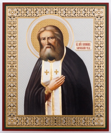 Икона на оргалите №1 11х13 двойное тиснение Серафим Саровский