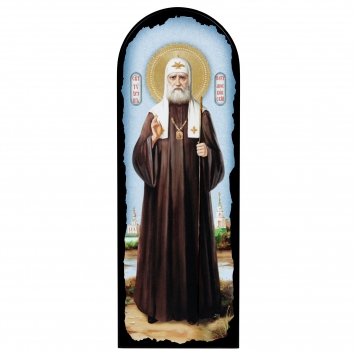 Икона на МДФ 18х50 арочная, объёмная печать, лак Тихон Патриарх Московский