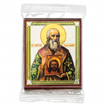 Икона на деревянном планшете 6х9 двойное тиснение, аннотация, упаковка Мартин исповедник