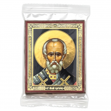 Икона на деревянном планшете 6х9 двойное тиснение, аннотация, упаковка Николай Чудотворец 29