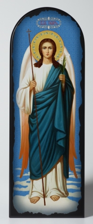 Икона на МДФ 18х50 арочная, объёмная печать, лак Гавриил Архангел 3
