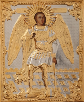 Икона на оргалите №1 11х13 двойное тиснение Михаил Архангел (поясной)