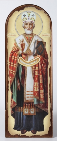 Икона на дереве 18х50 арочная, канвас, упаковка Николай Чудотворец (ростовой, ковчег)