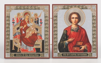 Складни деревянные 15х22 двухстворчатые, двойное тиснение Пантелеимон - Всецарица