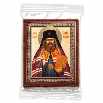 Икона на деревянном планшете 6х9 двойное тиснение, аннотация, упаковка Иоанн Шанхайский (2)