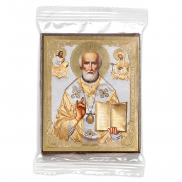Икона на доске 22х26 объёмная печать, лак Николай Чудотворец поясной (ковчег)