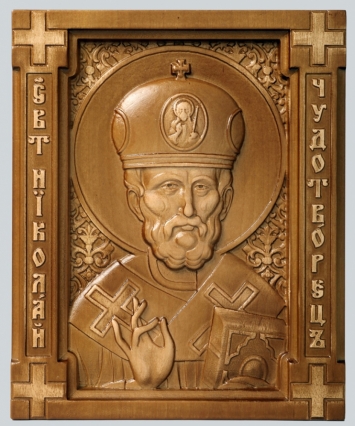 Икона деревянная резная 18х22 Николай Чудотворец