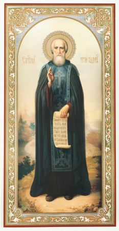 Икона на оргалите №1 30х40 двойное тиснение Сергий Радонежский (ростовой)
