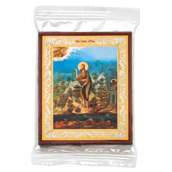 Икона на деревянном планшете 6х9 двойное тиснение, аннотация, упаковка Иоанн Креститель 2