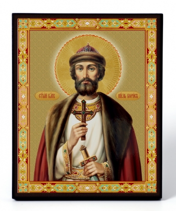 Икона на МДФ 18х50 арочная, объёмная печать, лак Владимир 1