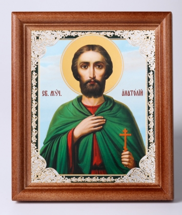 Икона в деревянной рамке 11х13 Набор с Днем Ангела, двойное тиснение Анатолий 2
