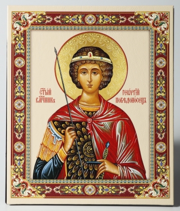 Икона настольная 11х13 на подставке, объемная печать Георгий Победоносец