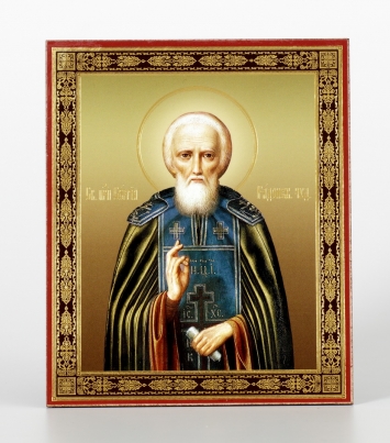 Икона на доске 13х15 объёмная печать, лак Серафим Саровский 2