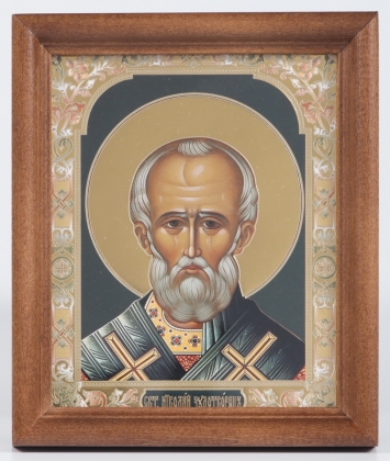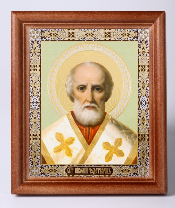 Икона в деревянной рамке №1 11х13 двойное тиснение Николай Чудотворец 31