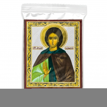 Икона на деревянном планшете 6х9 двойное тиснение, аннотация, упаковка Родион