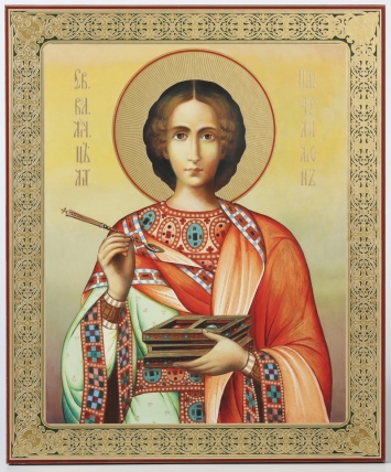 Икона на оргалите №1 30х40 двойное тиснение Пантелеимон 3