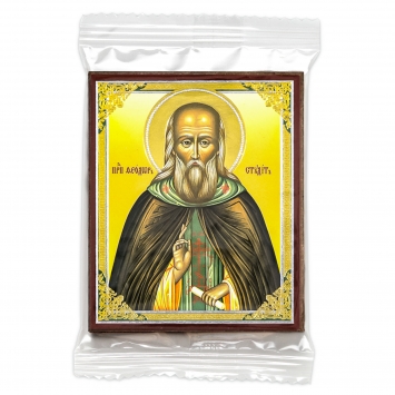 Икона на деревянном планшете 6х9 двойное тиснение, аннотация, упаковка Серафим Саровский 6