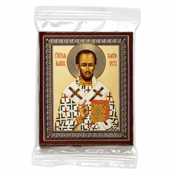 Икона на деревянном планшете 6х9 двойное тиснение, аннотация, упаковка Иоанн Златоуст 4