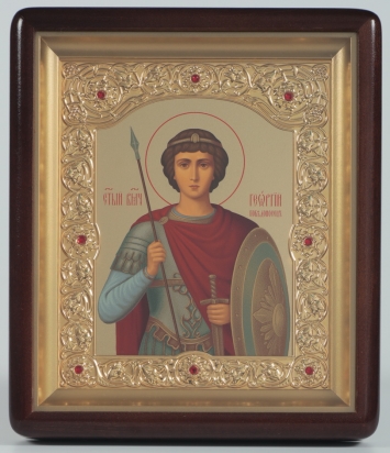 Икона в киоте 18х24 фигурный, темпера №8, рамка фигурная, золочёная Георгий Победоносец 1