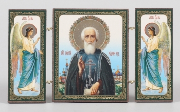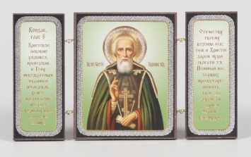 Складни деревянные 7х12 трехстворчатые, двойное тиснение Сергий Радонежский 2
