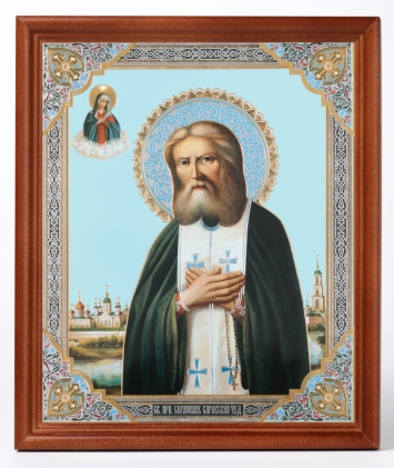 Икона на оргалите №1 18х24 двойное тиснение Серафим Саровский 3
