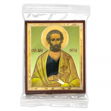 Икона на деревянном планшете 6х9 двойное тиснение, аннотация, упаковка Петр, апостол