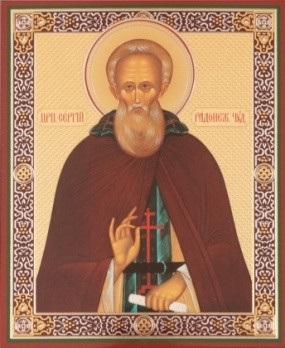 Икона на оргалите №1 30х40 двойное тиснение Сергий Радонежский