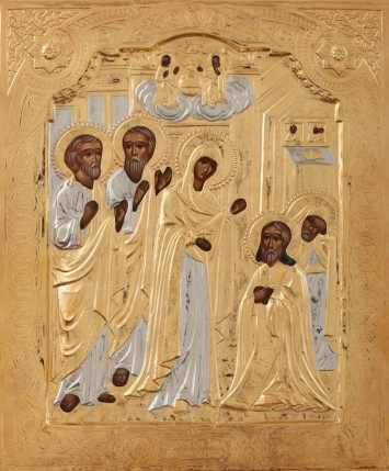 Икона на доске 13х15 золоченое покрытие, объёмная печать, лак Сергий Радонежский 1
