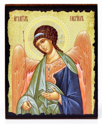 Икона на доске 9х11 объемная печать, лак Архангел Гавриил 2