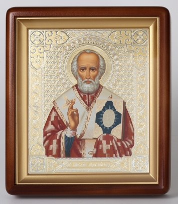 Икона в деревянной рамке №1 11х13 двойное тиснение Николай Чудотворец 16