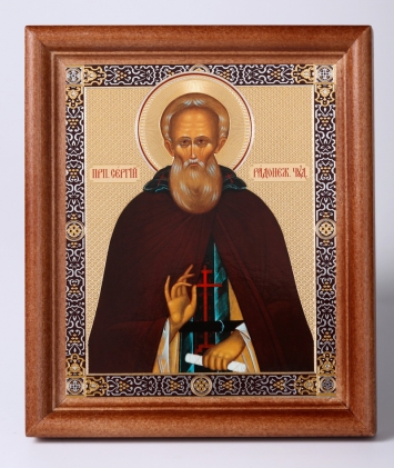 Икона в деревянной рамке №1 11х13 двойное тиснение Сергий Радонежский