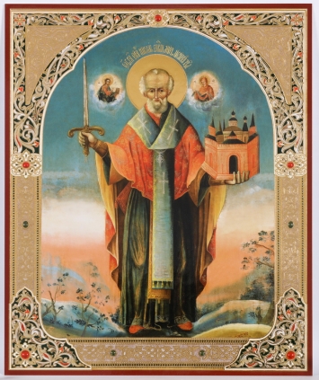 Икона на доске 30х40 объемная печать, лак №1 Спиридон Тримифунтский