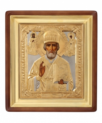 Икона живописная в киоте 40х50 масло, риза №141, киот №1 Николай Чудотворец