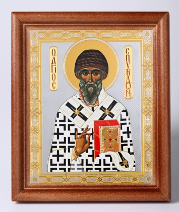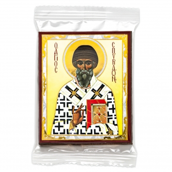 Икона на деревянном планшете 6х9 двойное тиснение, аннотация, упаковка Спиридон Тримифунтский