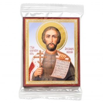Икона на деревянном планшете 6х9 двойное тиснение, аннотация, упаковка Александр Невский 2