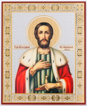 Икона на доске 40х50 объемная печать, лак Александр Невский
