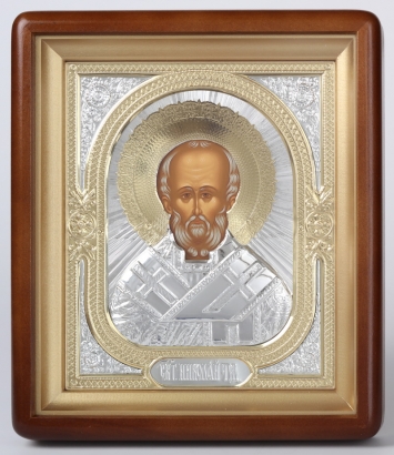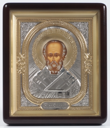Икона в киоте 18х24 фигурный, темпера, риза объёмная №1 Николай Чудотворец