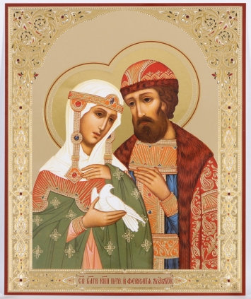 Икона на оргалите №1 18х24 двойное тиснение Петр и Феврония 7