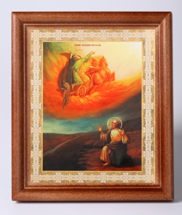 Икона в деревянной рамке №1 11х13 двойное тиснение Огненное восхождение Илии Пророка