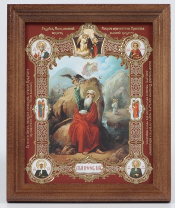 Икона в деревянной рамке 13х18 конгрев, плёнка (без стекла) Илия Пророк (с клеймами)