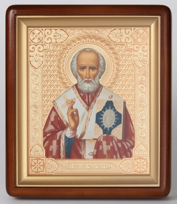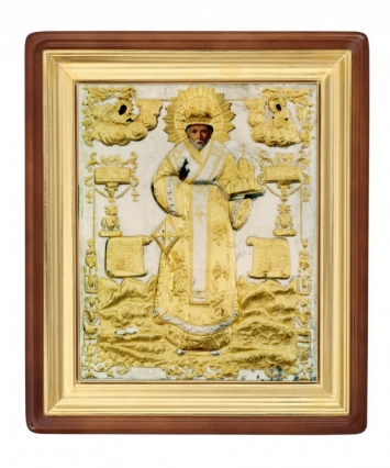 Икона в киоте 18х24 фигурный, темпера, риза-рамка №1 Николай Чудотворец