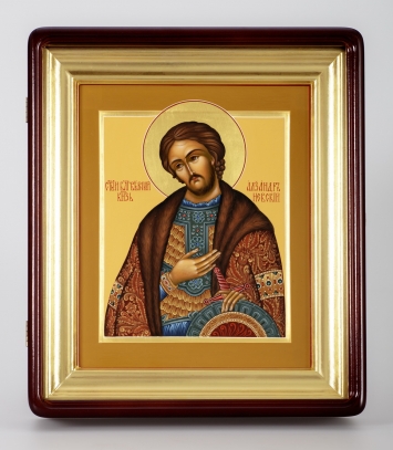 Икона живописная на доске в киоте 24х30 темпера, золоченый нимб, ковчег, киот №1 Александр Невский