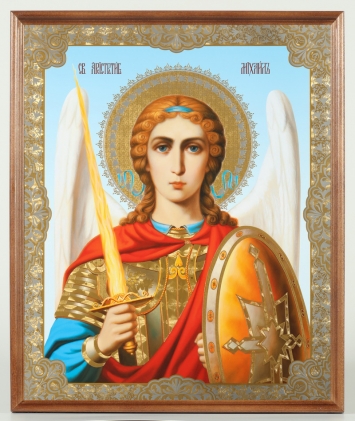 Икона в деревянной рамке №1 30х40 двойное тиснение, упаковка Михаил Архангел (поясной)