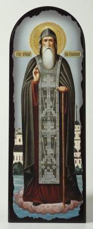 Икона на МДФ 18х50 арочная, объёмная печать, лак Нил Столобенский
