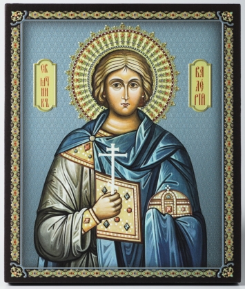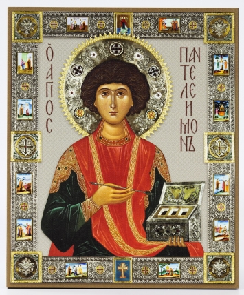 Икона на доске 33х40 объемная печать, лак Пантелеимон