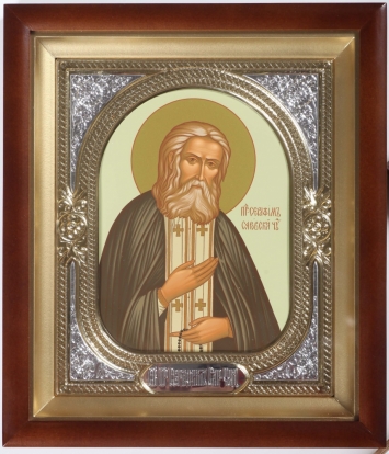 Икона в киоте 18х24 сложный, темпера, риза-рамка №1 Серафим Саровский